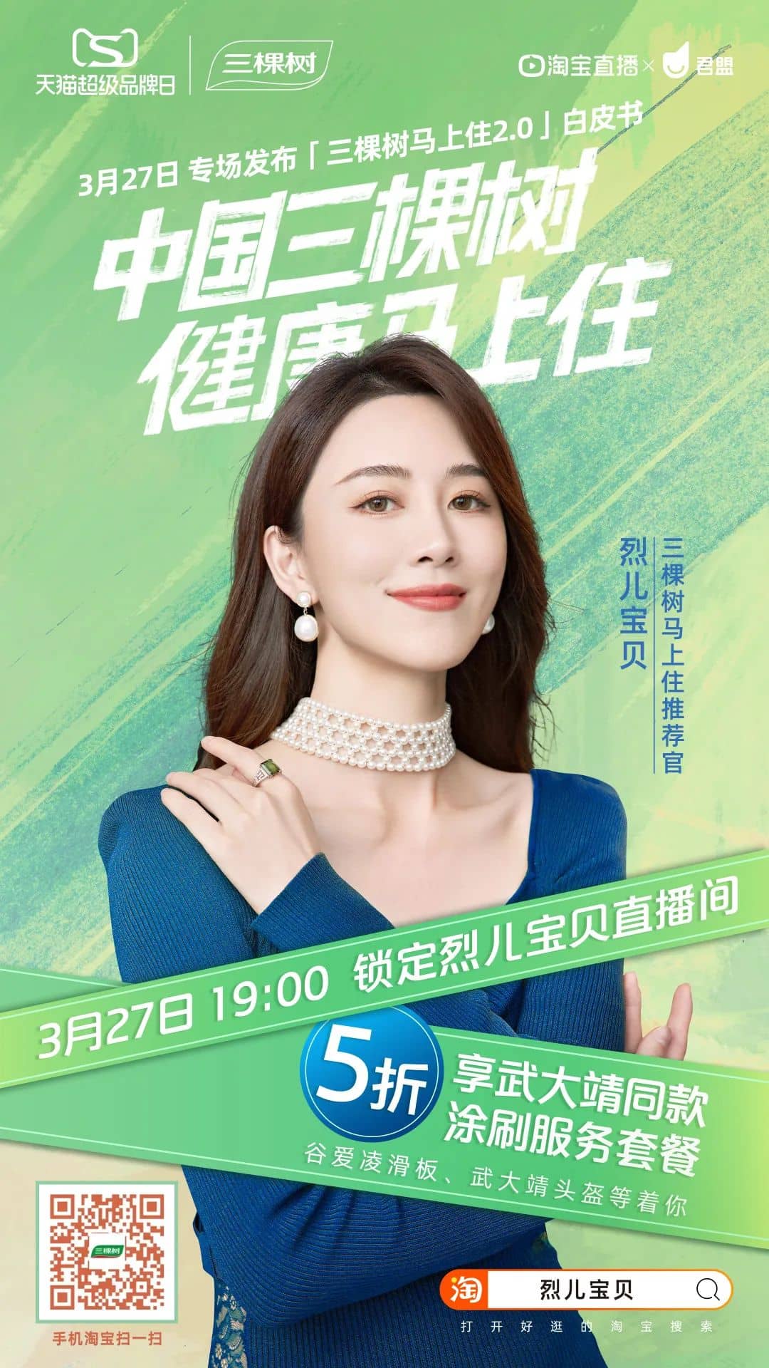 有服務(wù)升級,更有福利升級。3月27日超品日當(dāng)天,19:00鎖定烈兒寶貝直播間,5折享武大靖同款涂刷服務(wù)套餐。“中國三棵樹 健康馬上住”和冬奧冠軍一起,見證三棵樹天貓超級品牌日,和健康美好的新生活相約。