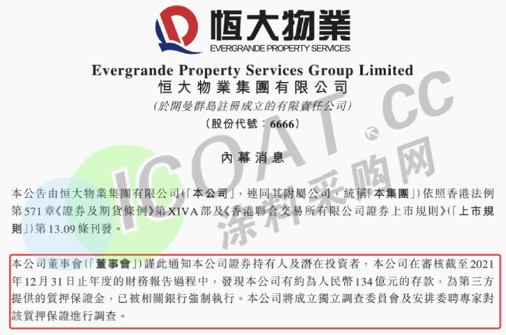 近日,屢現(xiàn)波折的恒大集團(tuán)再曝出重磅消息。在恒大全球債權(quán)人電話會議上,中國恒大執(zhí)行董事肖恩指出,恒大境外直接債務(wù)折合約227億美元。而在此前,中國恒大、恒大汽車、恒大物業(yè)同時公告臨時停牌,原因主要系中國恒大重要子公司恒大物業(yè),在審核2021年度財報中發(fā)現(xiàn)有約134億元存款,為第三方提供的質(zhì)押保證金,已被相關(guān)銀行強(qiáng)制執(zhí)行。
