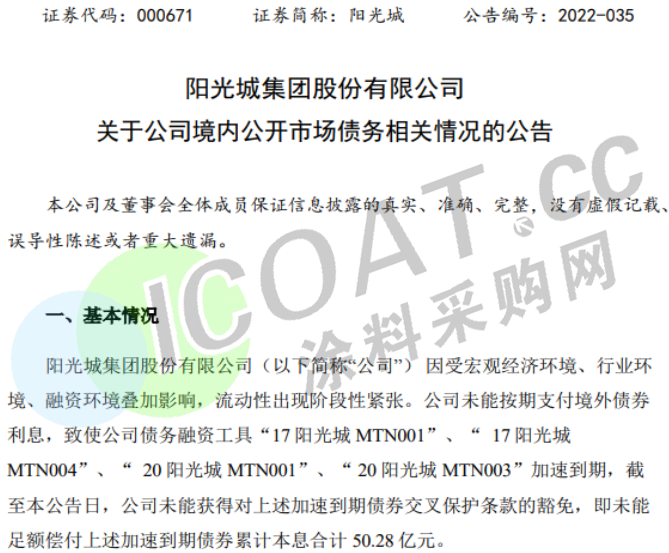 陽光城公告四筆債券違約,均為中期票據(jù),合計金額50.28億元,原因是交叉違約觸發(fā)提前到期,而這很可能將引發(fā)更多的債務(wù)提前到期或交叉違約。
