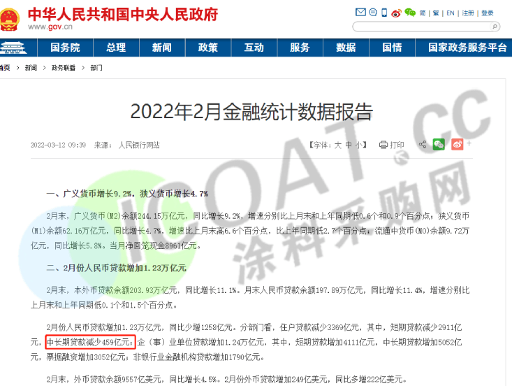 近日,央行公布了2月份的金融數(shù)據(jù),其中一項非常刺眼。“居民中長期貸款減少459億元”;在我國居民中長期貸款被個人按揭房貸占了近9成,這-459億可以簡單理解為是居民按揭房貸出現(xiàn)了負(fù)增長。