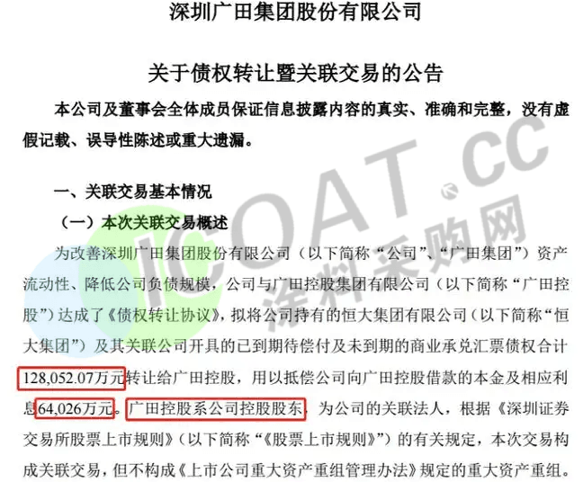 那么這些承兌匯票到底還值多少錢?以恒大為例,去年底恒大的商票打三折都沒人要,廣田集團(tuán)則表示,恒大集團(tuán)及其關(guān)聯(lián)公司開具的已到期待償付及未到期的商業(yè)承兌匯票債權(quán)合計12.8億元轉(zhuǎn)讓給控股股東廣田控股,用以抵償公司向廣田控股借款的本金及相應(yīng)利息6.4億元,相當(dāng)于五折出售。