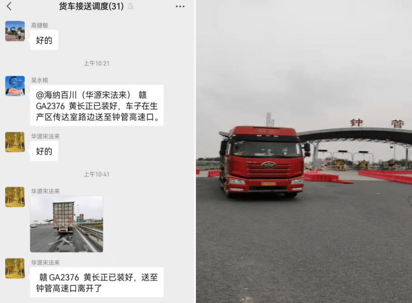 自3月28日起,貨車接送工作開始啟動。每日下午3點前,企業內部就將明日到司裝貨的車輛信息統計上報政府備案。第二天車輛到達前與司機取得聯系,提前組織人員在高速口等待車輛到來,經過路口防疫人員檢查,簽字確認后帶領車輛抵達企業倉庫裝貨。裝貨完成后,帶領車輛到達高速路口,簽字確認,目送車輛離開。全程閉環管理,最大限度降低疫情防控風險。