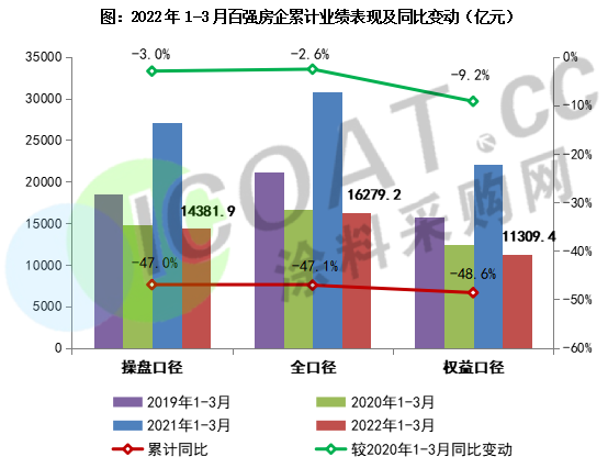 在剛剛過(guò)去的3月,中國(guó)房地產(chǎn)行業(yè)下行壓力持續(xù),企業(yè)銷售同比降幅較1、2兩月進(jìn)一步擴(kuò)大。TOP100房企單月僅實(shí)現(xiàn)銷售操盤金額5115.4億元,同比降低52.7%。累計(jì)業(yè)績(jī)來(lái)看,1-3月百?gòu)?qiáng)房企的整體業(yè)績(jī)規(guī)模同比大幅降低47%,可謂是開局慘淡。具體來(lái)看,一季度有逾8成的百?gòu)?qiáng)房企累計(jì)業(yè)績(jī)同比降低,其中近4成企業(yè)的降幅高于50%。
