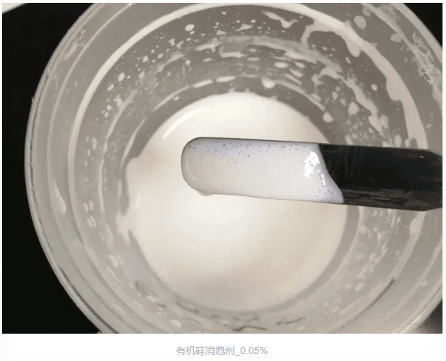 如下圖所示,使用有機硅消泡劑的試樣,高速分散20分鐘后,內部還是有少量微泡存在: