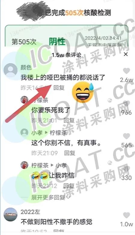 近日,網(wǎng)傳王某已完成505次核酸檢測(cè)的截圖,網(wǎng)友笑稱,啞巴都捅的能說(shuō)話了,不做到陽(yáng)性不撒手