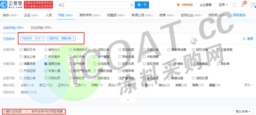 同時期化工行業注銷的企業則是涂料企業的10倍左右。2022年度化工注銷備案企業共261家,簡易注銷企業共1253家,合計近1500家左右。
