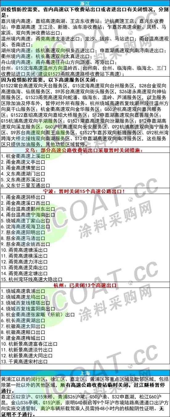 受持續肆虐疫情的影響,浙江、陜西、山西、江蘇等十幾個地區陸續升級防控措施,宣布臨時關閉高速公路出口及服務區。涉及長三角、東北、西北、華北等省份,僅僅江浙地區已關閉的高速出口及服務區就高達193個(其中服務區55個、高速出口138個)。