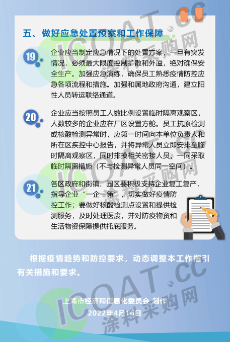 近日疫情多點散發,全國多地陷入靜默管理、嚴格封控態勢,多家工業、制造業、企事業單位被迫停工停產,而自3月底開始實施疫情封控的上海地區更是雪上加霜。為統籌推進疫情防控和經濟社會發展,有力有序有效推動企業復工復產,上海市經信委發布《上海市工業企業復工復產疫情防控指引(第一版)》圖解,工信部也于近期表示,支持在滬重點企業穩定生產。這無疑釋放出了一個信號,企業復工有望了!