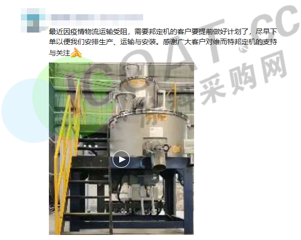 某邦定機設備企業表示,物流運輸受阻,請大家盡早下單以便安排生產。
