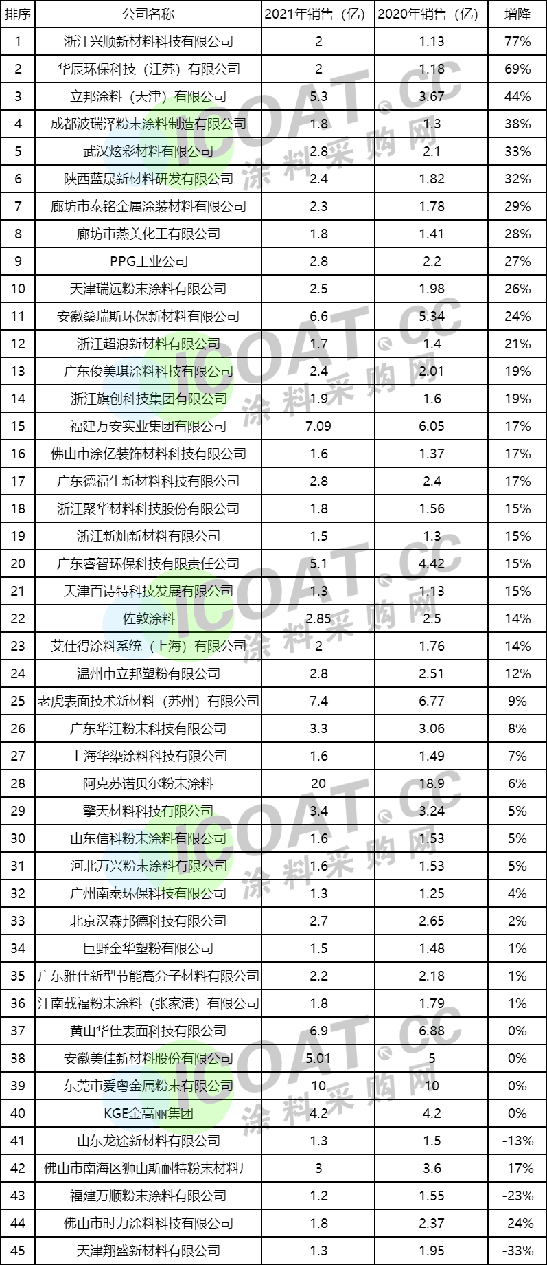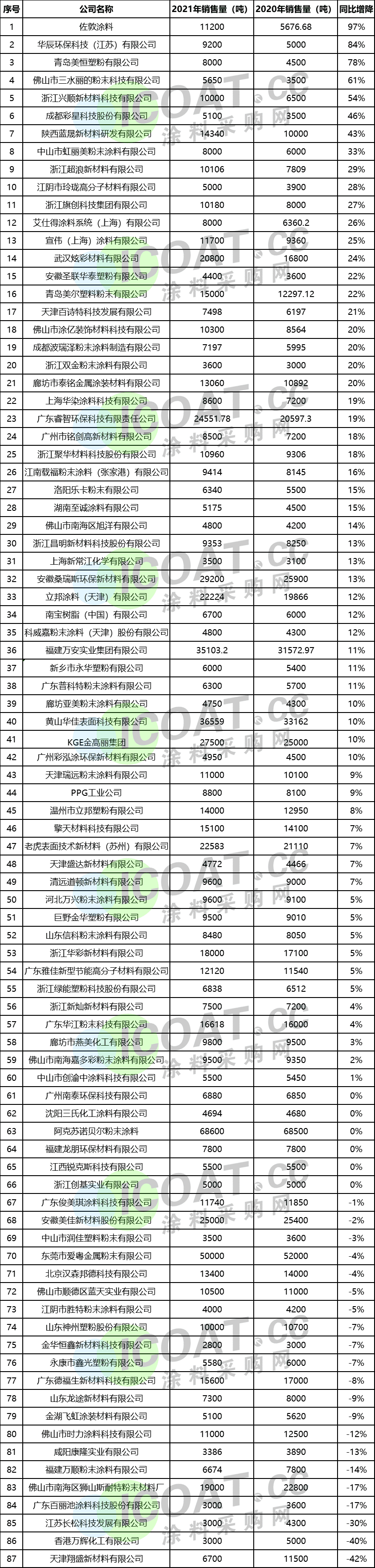 結合銷量100強企業的數據來看,浙江興順新材料科技有限公司的銷售量增幅達到50%,可以說是量價其升。在2021年,各種原材料及生產成本持續上漲的大背景之下,粉末涂料企業漲價也是大勢所趨,但是想要利潤同步出現大比例的增長,這個對很多企業來說是非常困難的。