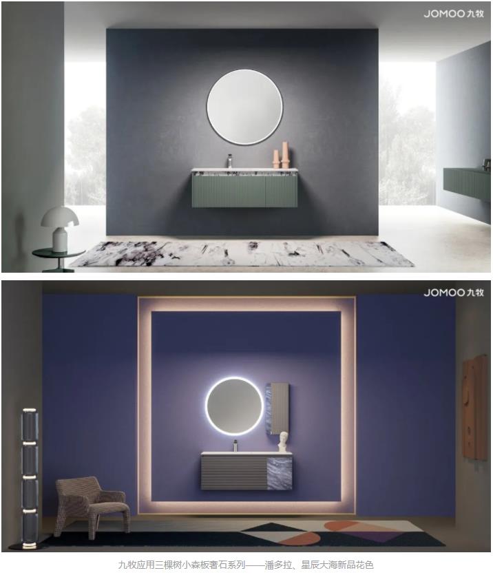 32年深耕行業,九牧將品質產品、優質服務帶給每一位用戶,以創新科技為內驅力,不斷成長。在深得市場與消費者信任的同時,面對市場及用戶需求的全面升級,九牧引進三棵樹小森板奢石系列——潘多拉、星辰大海新品花色,為用戶提供更多衛浴空間花色風格選擇。