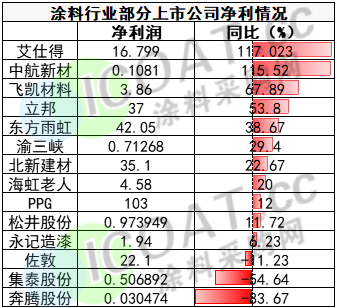 部分涂料企業2021年凈利潤情況