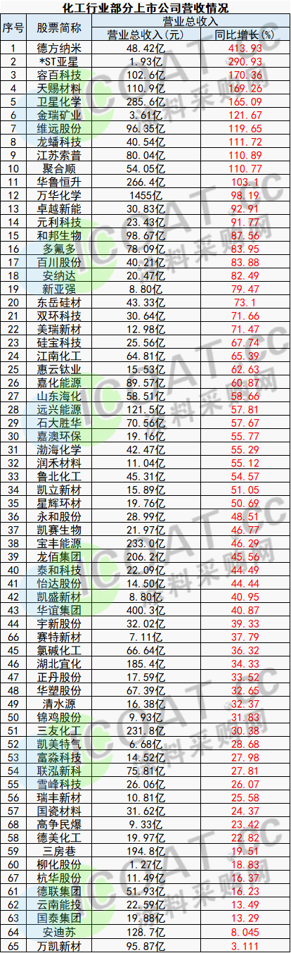 60多家化工原料企業營收盈利雙增長