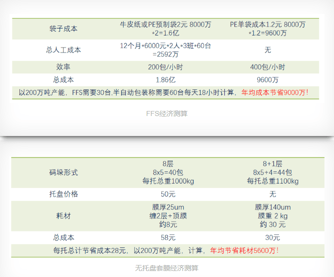 與之配套的碼垛設備最高碼垛速度2000包/小時,適用多種袋型。冷拉伸套膜機取代傳統(tǒng)的纏膜機,實現(xiàn)完美的二次包裝,包裝效果更穩(wěn)固,產(chǎn)品外觀也更好。配合翻轉(zhuǎn)機可以實現(xiàn)無托盤物流,不僅節(jié)省了物流成本,更大幅減少了包材及人工的運營成本,同傳統(tǒng)包裝相比,年均節(jié)省一個多億的耗材使用,使企業(yè)收益最大化。因其具有極佳的產(chǎn)品性能以及獨特的價格優(yōu)勢,一經(jīng)投入市場便吸引了北新建材、東方雨虹等知名涂料、建材企業(yè)誠意滿滿與之洽談合作。