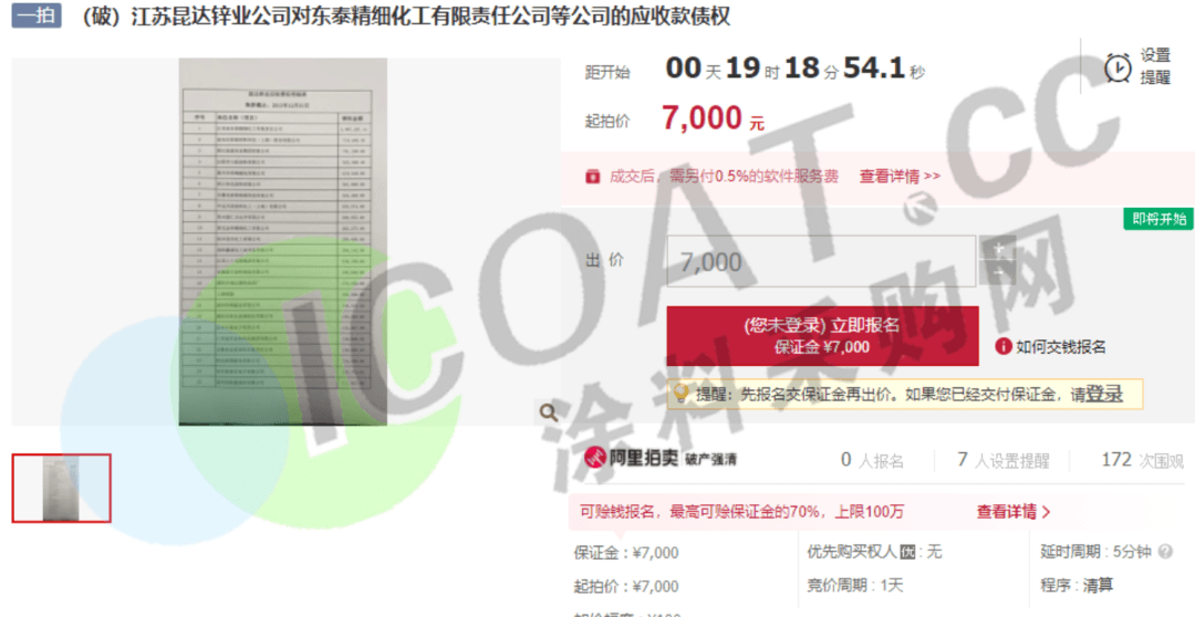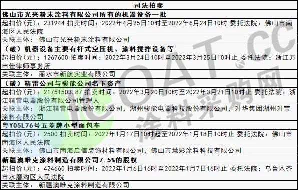 部分涂料企業(yè)司法拍賣