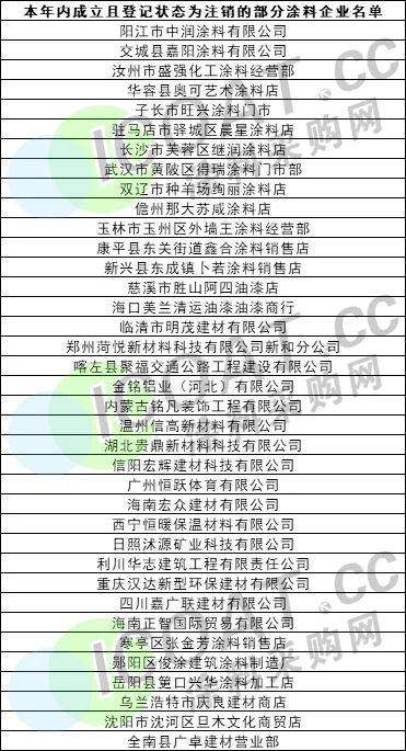 另外,處于簡(jiǎn)易注銷和注銷備案處境的涂料企業(yè)也不在少數(shù),值得注意的是,本年內(nèi)成立且目前的經(jīng)營(yíng)狀態(tài)已經(jīng)處于注銷階段的超過(guò)500家。