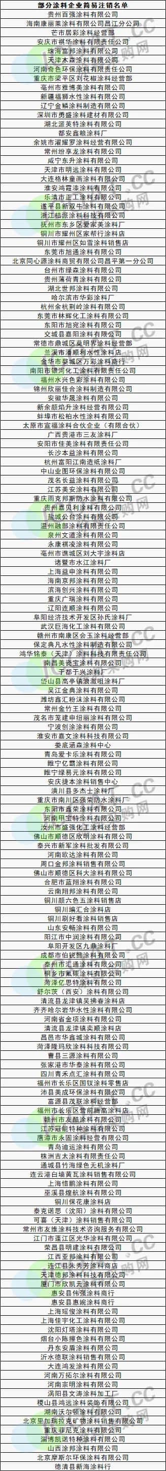據(jù)涂料采購(gòu)網(wǎng)不完全統(tǒng)計(jì),年初至4月底,涂料企業(yè)(含涂料制造、銷售等名稱中包括“涂料”關(guān)鍵詞的企業(yè))出現(xiàn)司法拍賣、破產(chǎn)重整、注銷等風(fēng)險(xiǎn)的企業(yè)超過(guò)200家,他們目前已經(jīng)是一只腳邁進(jìn)了“注銷”的大門,盡管公司狀態(tài)欄還掛著“存續(xù)”二字,但距離徹底銷聲匿跡只有一步之遙。