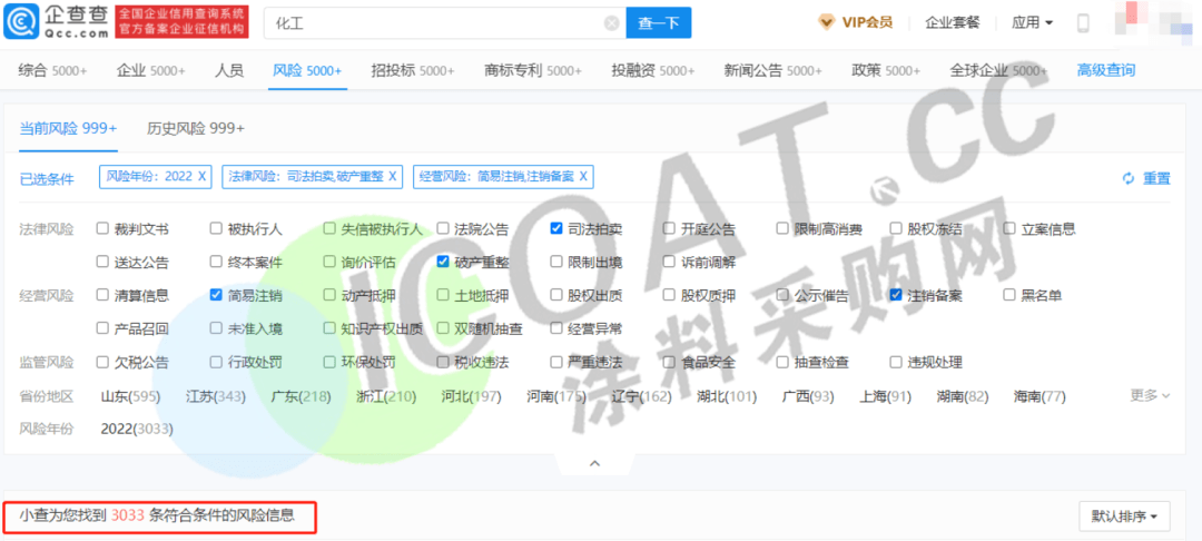 而在化工行業(yè),倒閉、破產(chǎn)或者目前情況焦灼的則更多一些。據(jù)涂料采購(gòu)網(wǎng)不完全統(tǒng)計(jì),僅3個(gè)多月的時(shí)間里,化工行業(yè)(含化工品制造、銷售等企業(yè)名稱中包含“化工”關(guān)鍵詞的企業(yè))超過(guò)3000家,覆蓋的區(qū)域包括山東、浙江、河南、河北、遼寧、上海等,可謂是從東到西,從南到北均被涉及。