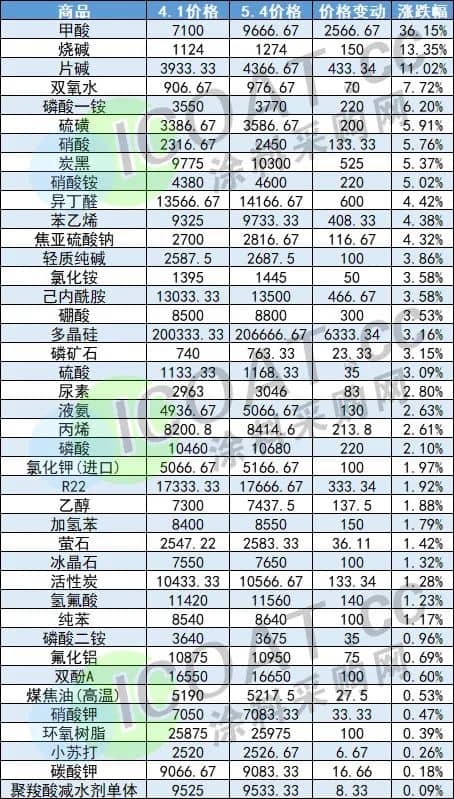 無論是石油的價格上漲,還是化工期貨市場的飆紅,對于化工產業鏈上的原材料價格波動無疑起到了推波助瀾的作用,近一個月以來30余種化工品現貨價格開始悄然走高。