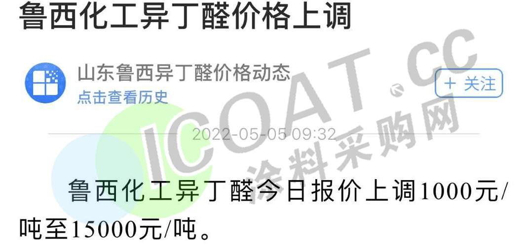 魯西化工異丁醛價格上調1000元/噸至15000元/噸。