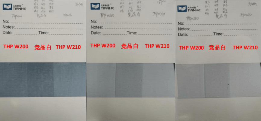 不僅對水性漆成膜、硬度無不良影響,還對高光漆的光澤度表現出友好。與競品對比,THP A517黑具有更好的通用性、更高的光澤、更好的耐水耐鹽霧性。