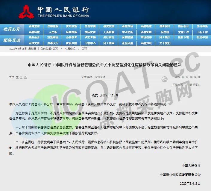 近日,樓市再傳重磅利好消息!中國人民銀行、中國銀行保險監督管理委員會發布《關于調整差別化住房信貸政策有關問題的通知》,明確對于貸款購買普通自住房的居民家庭,首套住房商業性個人住房貸款利率下限調整為不低于相應期限貸款市場報價利率減20個基點。