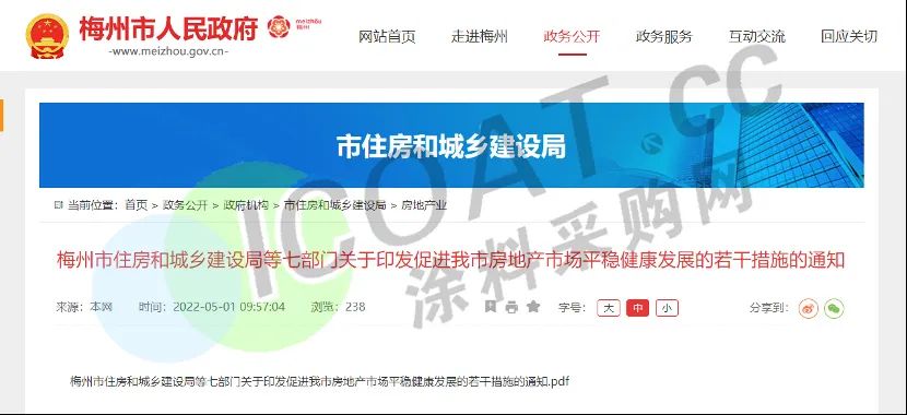 廣東省梅州市住房和城鄉建設局等七部門印發《關于促進我市房地產市場平穩健康發展的若干措施的通知》。《通知》提出,降低二套房公積金貸款首付比例,從當前執行的三成降至二成。