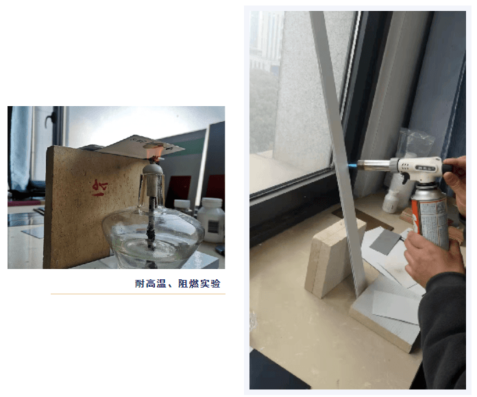 由于陶瓷涂層物理隔絕作用/金屬基材較好的導(dǎo)熱能力,柔性陶瓷水漆在使用復(fù)合涂層后仍保持了較好的耐高溫性能以及防止火焰蔓延的能力!