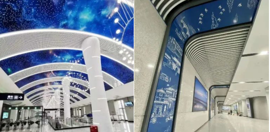 武漢地鐵(星空裝飾烤瓷鋁板)、南通西站“藍(lán)花布”裝飾板