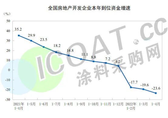從銷售回款方面來看,1—4月份商品房銷售面積39768萬平方米,同比下降20.9%,商品房銷售額37789億元,下降29.5%。百強房企4月單月實現銷售操盤金額4284.7億元,環比降低16.2%;同比降低58.6%,較3月降幅有所擴大,且處于近年來單月業績同比降幅的最高水平。
