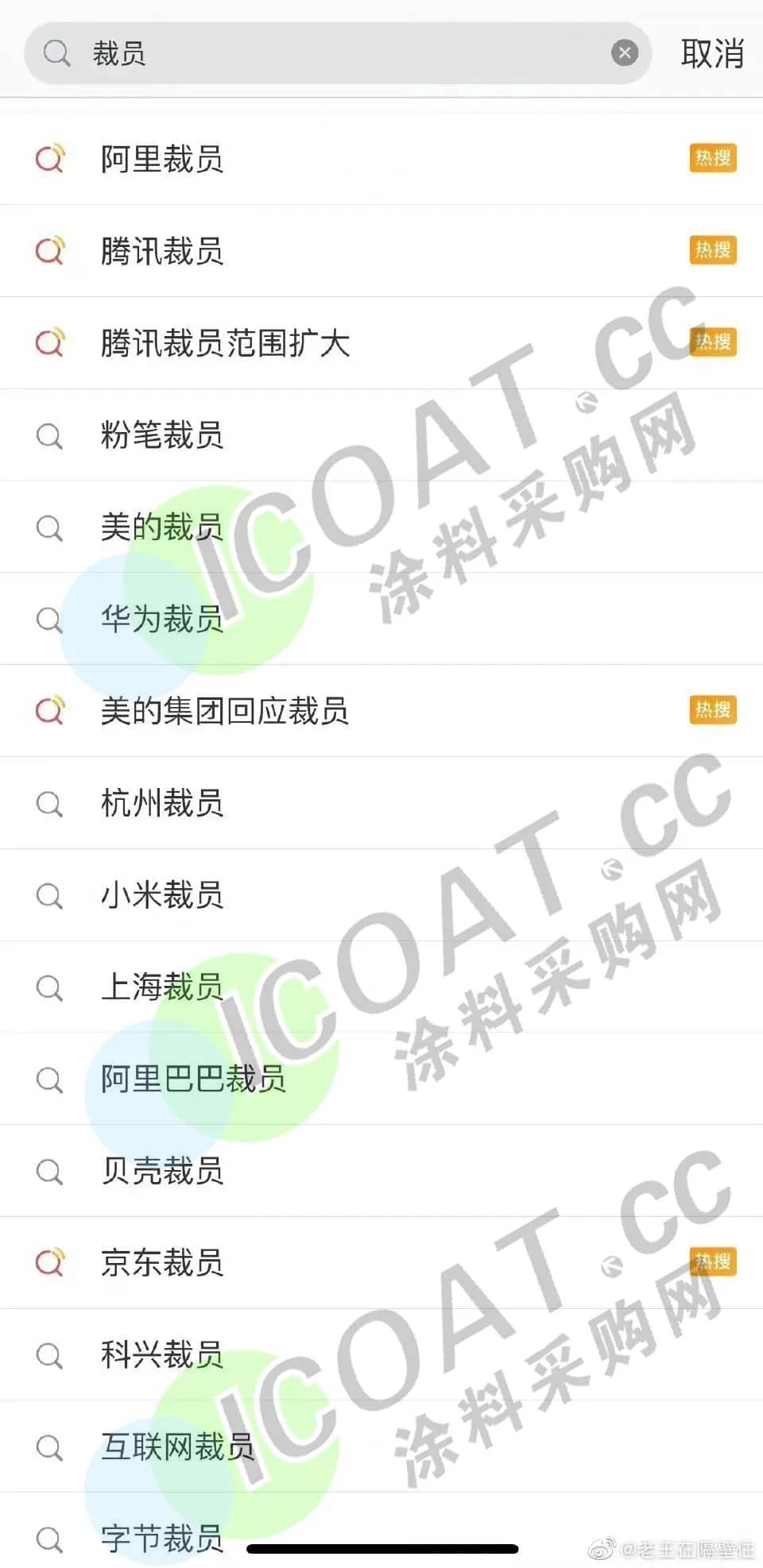據(jù)涂料采購網(wǎng)不完全統(tǒng)計,目前已有十幾家大廠被傳大幅裁員消息,覆蓋了互聯(lián)網(wǎng)、電器、培訓、汽車、房地產(chǎn)等多個行業(yè),部分官方的回應有些否認了比例,但對于裁撤的行為并沒有進行否認。此外,滴滴也面臨部門裁撤,包括橙心優(yōu)選、滴滴貨運等;快手也進行了業(yè)務優(yōu)化,覆蓋電商、算法、國際化、商業(yè)化、游戲、A站等多個業(yè)務部門。美團優(yōu)選、叮咚買菜、每日優(yōu)鮮等平臺均有不同程度的人員“優(yōu)化”,可謂是數(shù)不勝數(shù)。