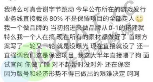 市場有消息稱,字節(jié)游戲團隊發(fā)行業(yè)務線裁員80%。字節(jié)旗下朝夕光年在廣州的發(fā)行線面臨裁員。包括三七互娛、心動網(wǎng)絡、完美世界、掌趣等均出現(xiàn)裁員、優(yōu)化等情況,網(wǎng)易、莉莉絲等雖然沒有曝出裁員,但也砍掉了部分游戲項目,項目組成員要么轉(zhuǎn)組,要么跳槽到其他企業(yè)。而像百度、愛奇藝等非游戲廠商的游戲業(yè)務甚至被批量裁撤。字節(jié)跳動旗下朝夕光年相關(guān)負責人回應稱:該信息不實,部分業(yè)務確實有調(diào)整,但無大規(guī)模裁員。