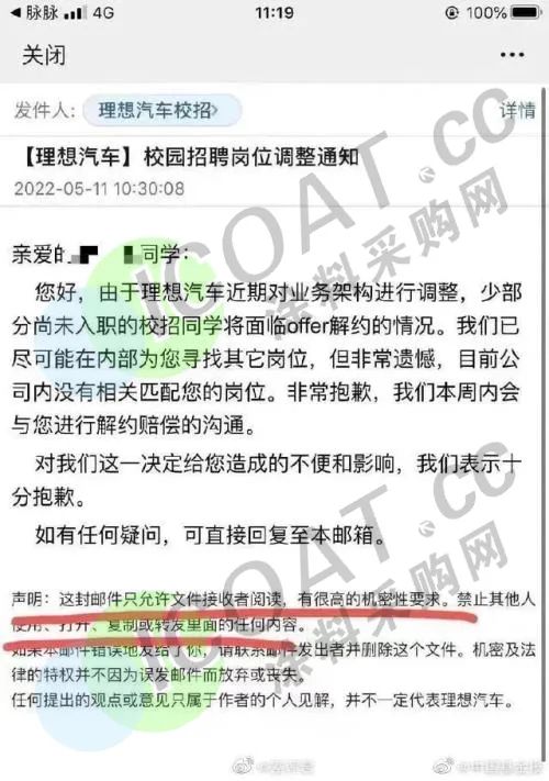 理想汽車表示,近期理想汽車進行了業(yè)務調(diào)整,部分崗位被關(guān)閉,涉及部分今年尚未入職的校招生伙伴。鑒于可能對這些學生重新找工作造成的不便,理想汽車提供了調(diào)崗選擇和解約賠償?shù)姆桨福壳罢谂c相關(guān)學生進行溝通。
