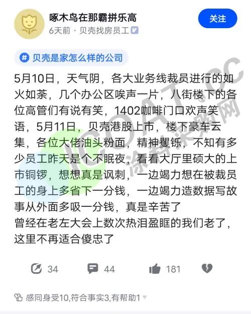 貝殼:不到一年3次裁員,9萬經(jīng)紀人流失