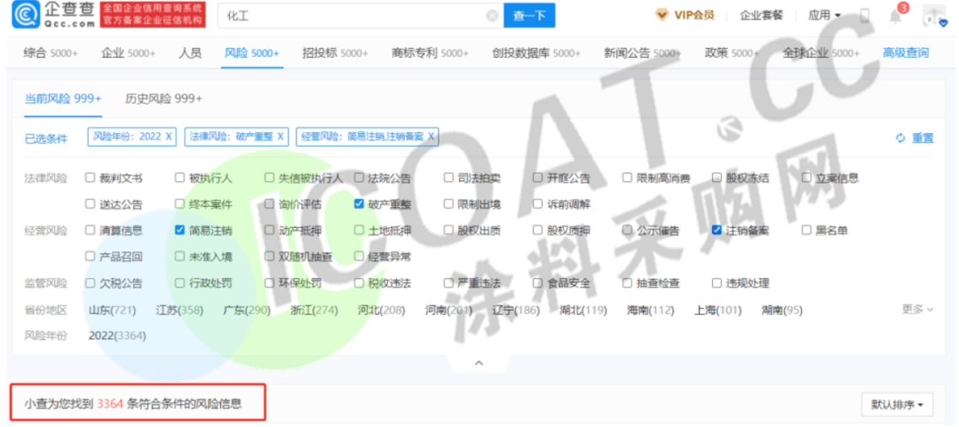相較于涂料行業(yè)1000多家企業(yè)的倒閉注銷,化工行業(yè)的狀態(tài)顯然更慘一些。化工行業(yè)2022年以來倒閉注銷或破產(chǎn)重整的企業(yè)共計(jì)4761家,其中本年度成立且注銷的企業(yè)共計(jì)1397家,其余3364家成立時(shí)間長短不等,且目前正在進(jìn)行注銷或已經(jīng)倒閉。