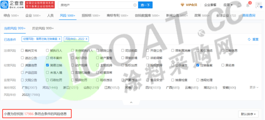 房地產(chǎn)行業(yè),2022年以來,正在簡易注銷、注銷備案或是破產(chǎn)重整狀態(tài)的企業(yè)為17986家。