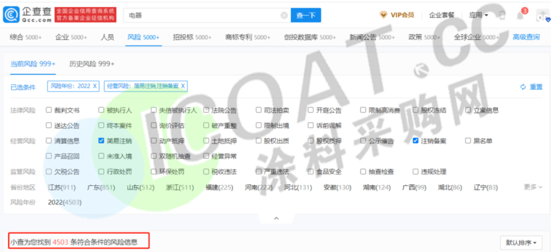 電器行業(yè),2022年以來,正在簡易注銷、注銷備案或是破產(chǎn)重整狀態(tài)的企業(yè)為4503家。
