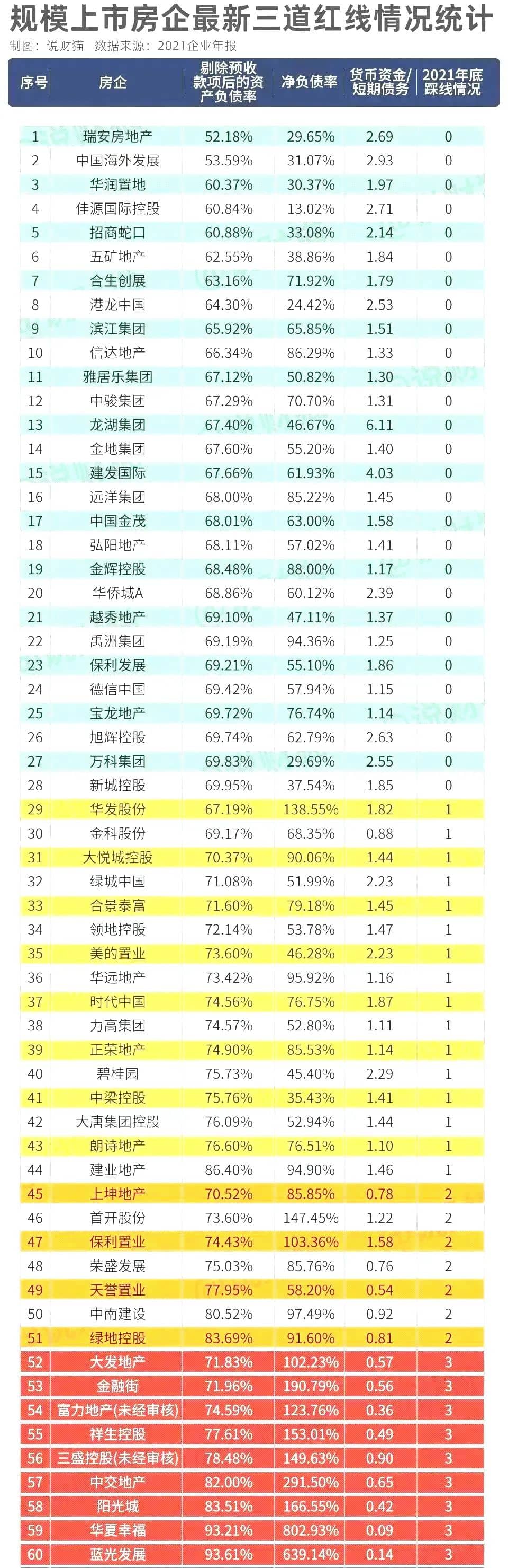 當(dāng)前房地產(chǎn)市場(chǎng)迎來(lái)了全國(guó)全行業(yè)層面的嚴(yán)峻考驗(yàn),從TOP30房企拿地情況來(lái)看,今年一季度的銷售情況比2020年要差,預(yù)計(jì)二季度全國(guó)市場(chǎng)的表現(xiàn)也難以盡如人意。按照規(guī)模上市房企最新三道紅線情況統(tǒng)計(jì),三道紅線全踩的“紅檔”房企占比為15%。祥生控股、陽(yáng)光城、華夏幸福、藍(lán)光發(fā)展等多家企業(yè)已經(jīng)連踩三條紅線,相當(dāng)于被貼上了“危險(xiǎn)”的警告標(biāo)簽,一只腳已經(jīng)站在懸崖邊上。