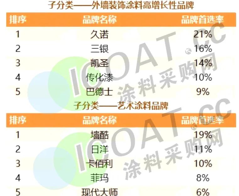 據(jù)一季度發(fā)布的“2022房地產(chǎn)開發(fā)企業(yè)綜合實(shí)力TOP500”、“TOP500房企首選供應(yīng)商服務(wù)商品牌”等系列測(cè)評(píng)榜單可知,亞士漆、富思特、固克、德愛威、美涂士、巴德士、久諾、多樂士專業(yè)、華潤(rùn)漆、經(jīng)典等多個(gè)涂料品牌均被房地產(chǎn)行業(yè)認(rèn)可和廣泛好評(píng)。地坪漆類、真石漆、多彩仿石漆、反射隔熱與絕熱涂料、水性涂料、外墻裝飾涂料、室內(nèi)藝術(shù)涂料等多個(gè)子分類也覆蓋了墻酷、日洋、菲瑪、卡百利、現(xiàn)代大師、三銀、威士伯、傳化漆、宣偉、申紐力、飛鹿、華德隆、凱圣、傳化漆、斯蒙等多個(gè)知名涂料品牌。