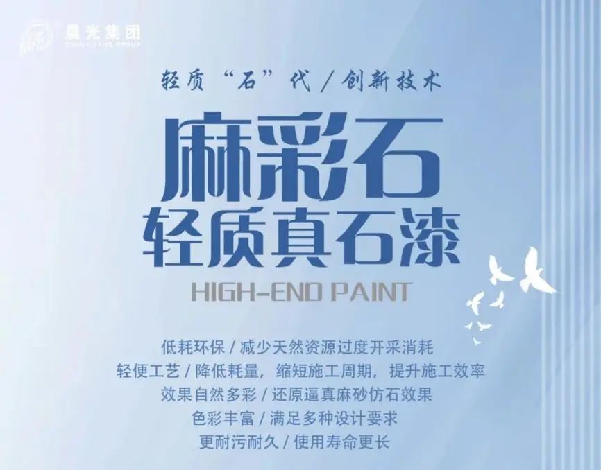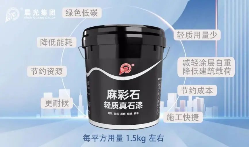 在新品發(fā)布會上,晨光集團(tuán)在政府政策和企業(yè)責(zé)任的雙向驅(qū)動下,現(xiàn)場解讀新研發(fā)的一款能全面替代真石漆的的產(chǎn)品,即晨光麻彩石-輕質(zhì)真石漆。據(jù)介紹,晨光麻彩石-輕質(zhì)真石漆具有最新創(chuàng)新技術(shù)、低耗能、耐污耐候、降低耗量、高效施工的優(yōu)勢。