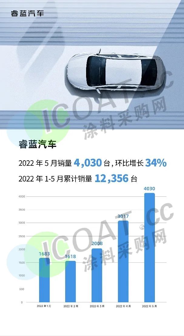 睿藍汽車:5月取得了4030臺的銷量成績,環比增長超30%,月銷量再度突破歷史記錄。今年1-5月,睿藍汽車不僅連續刷新月銷量歷史最好成績,累計銷量更是已經破萬,達到了12356臺。
