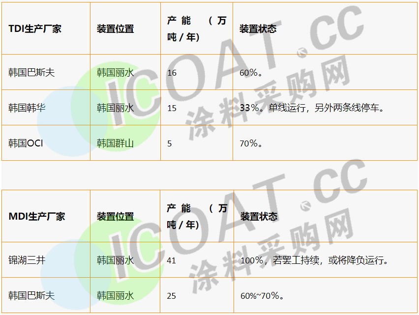 這場罷工直接導(dǎo)致韓國韓華位于麗水的TDI裝置降負(fù)33%運(yùn)行,同時(shí)巴斯夫位于麗水的TDI和MDI裝置降負(fù)60%運(yùn)行。