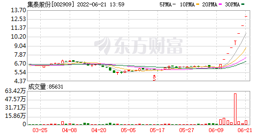 昨日(21日)上午,集泰股份觸及漲停,截至發(fā)稿,該股報12.86元,漲停板上封單超18萬手。也就是說,該股已連續(xù)漲停8天,成交額超8800萬元,換手率達1.91%,市值達47.94億元。