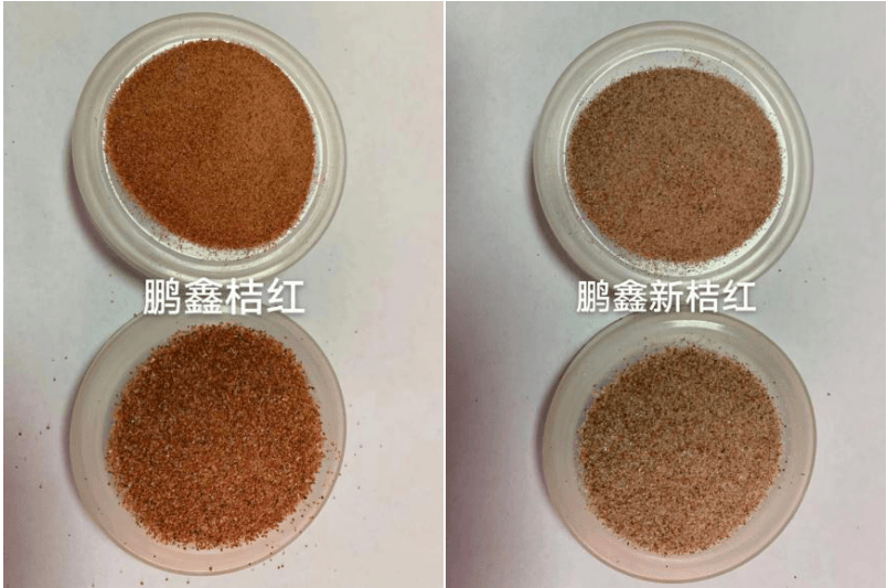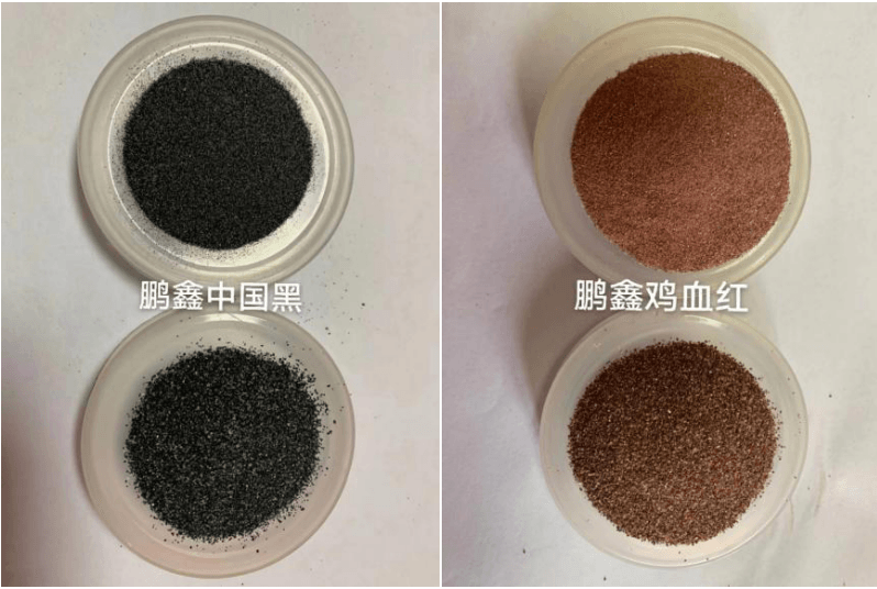 據下游客戶反饋,作為天然開采礦石后經過各種工序加工而成的天然彩砂,顏色渾然天成,種類也就十分有限。對此,擁有礦產資源的鵬鑫,能夠提供更為豐富、獨特的顏色選擇。黑色系列彩砂,是鵬鑫打造的地區特色的太行黑,也叫作“中國黑天然彩砂”聞名于世界,經常作為出口材料,還升級了亮黑彩砂豐富“黑色家族”。而鵬鑫紅色系列彩砂以太行山天然優質紅色花崗巖、大理石為原料,生產出來桃紅彩砂、芙蓉紅彩砂、肝紅彩砂、點紅彩砂、桔紅、新桔紅、雞血紅、月亮紅、臺灣紅、南非紅、鐵紅等各種紅色彩砂,滿足下游客戶多樣的顏色需求。