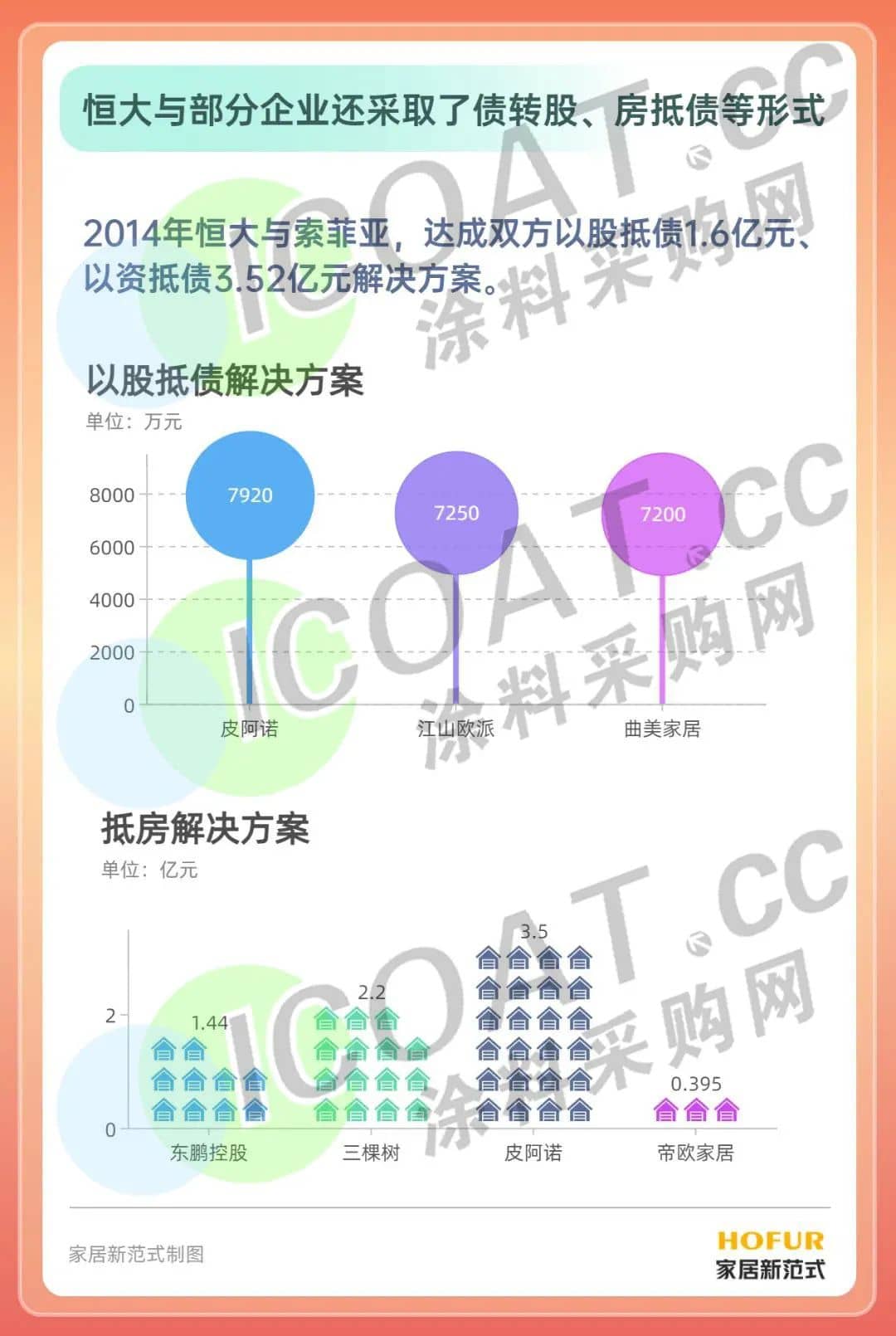 無論是曾經的瘋狂跨界,還是近期的“保交樓”承諾,都沒能挽救其自身的災難,同時也給整條產業鏈帶來巨大的危機。據統計,恒大對供應商的欠款達5000億。毫無夸張的說,從建房、裝修、賣房到廣告,整個產業鏈都被恒大的欠款所拖累。對于以房地產作為重要下游行業的涂料企業而言,被拖累的情況更是不言而喻。