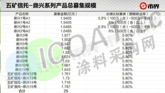 資料顯示,五礦信托-鼎興系列的管理公司為五礦國際信托有限公司,鼎興系列信托計劃成立于2021年3月至6月,產(chǎn)品期限均為12個月,最后到期日為2022年6月18日,除鼎興5號產(chǎn)品外,多期募資均為1.5億元-2億元,該系列產(chǎn)品由招商銀行代銷,總規(guī)模23億元,被定為“R3穩(wěn)健類固收產(chǎn)品”。