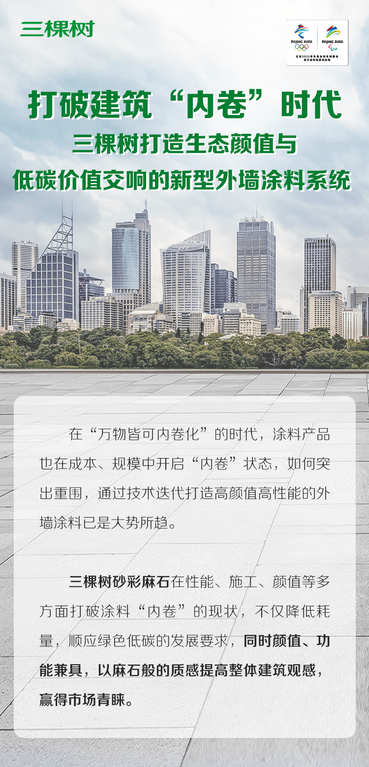 ?在“雙碳”目標的驅動下,涂料革新已成為建筑行業趨勢。作為北京2022年冬奧會和冬殘奧會官方涂料獨家供應商,三棵樹如何在激烈競爭環境下憑借專業化產品優勢,突破建筑行業“內卷”現狀?