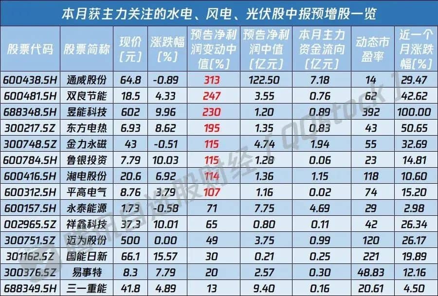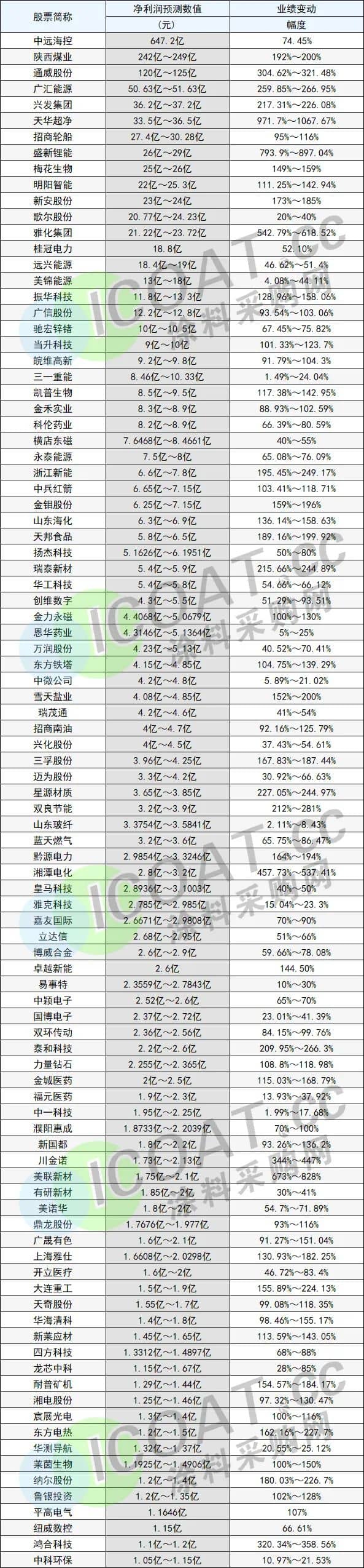 陜西煤業(yè)、通威股份等企業(yè)上半年凈利潤預(yù)增超過100億元。廣匯能源、興發(fā)集團(tuán)、天華超凈、盛新鋰能、明陽智能、新安股份等上市公司上半年凈利預(yù)增高達(dá)數(shù)十億元。