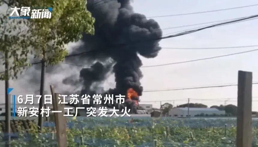 6月7日,江蘇常州新安村一工廠突發大火,現場火光沖天濃煙滾滾。目擊者表示自己家就在附近,起火的是一家化工廠。現場黑煙滾滾,伴隨有爆炸聲。