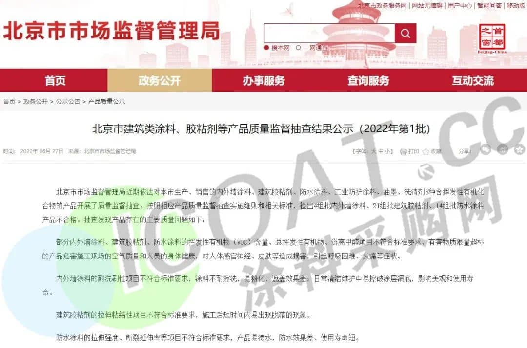 近日,北京市市場監(jiān)督管理局發(fā)布了《北京市建筑類涂料、膠粘劑等產(chǎn)品質(zhì)量監(jiān)督抽查結(jié)果公示(2022年第1批)》,央企A股上市公司北新建材旗下“龍牌漆”因產(chǎn)品不合格而登上質(zhì)量黑榜。